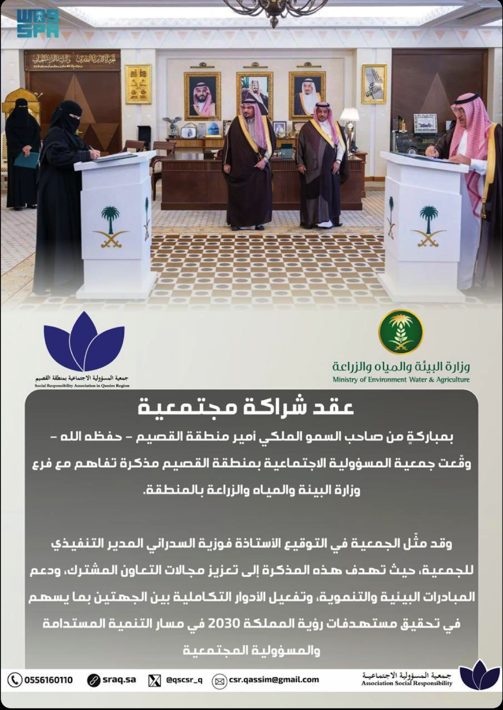 عقد شراكة مجتمعية مع وزارة البيئة والمياه والزراعة