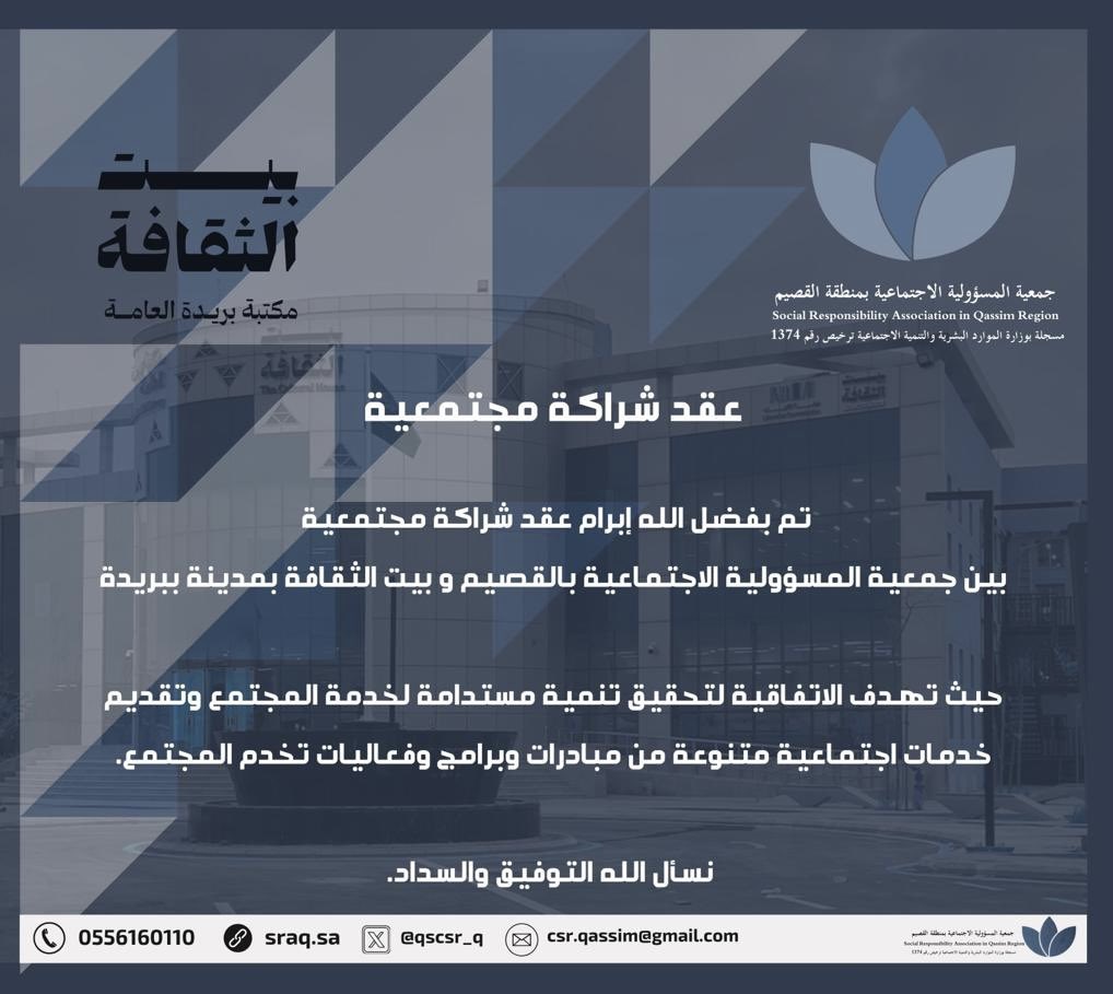 عقد شراكة مجتمعية مع بيت الثقافة ببريدة