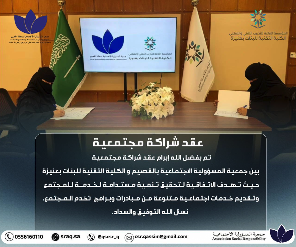 عقد شراكة مجتمعية مع كلية التقنية للبنات بعنيزة